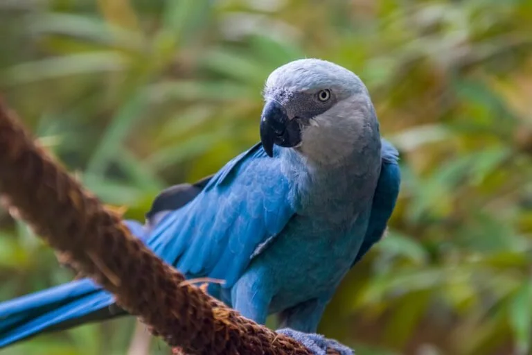 The cobalt blue Spix’s macaw was once extinct in the wild but has recently begun returning to its natural habitat through reintroduction efforts.